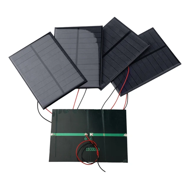 Lot De 5 Panneaux Solaires Polycristallins 5.5V 200mA - Fil 15 Cm - Pour Projets DIY, Éclairage, Science