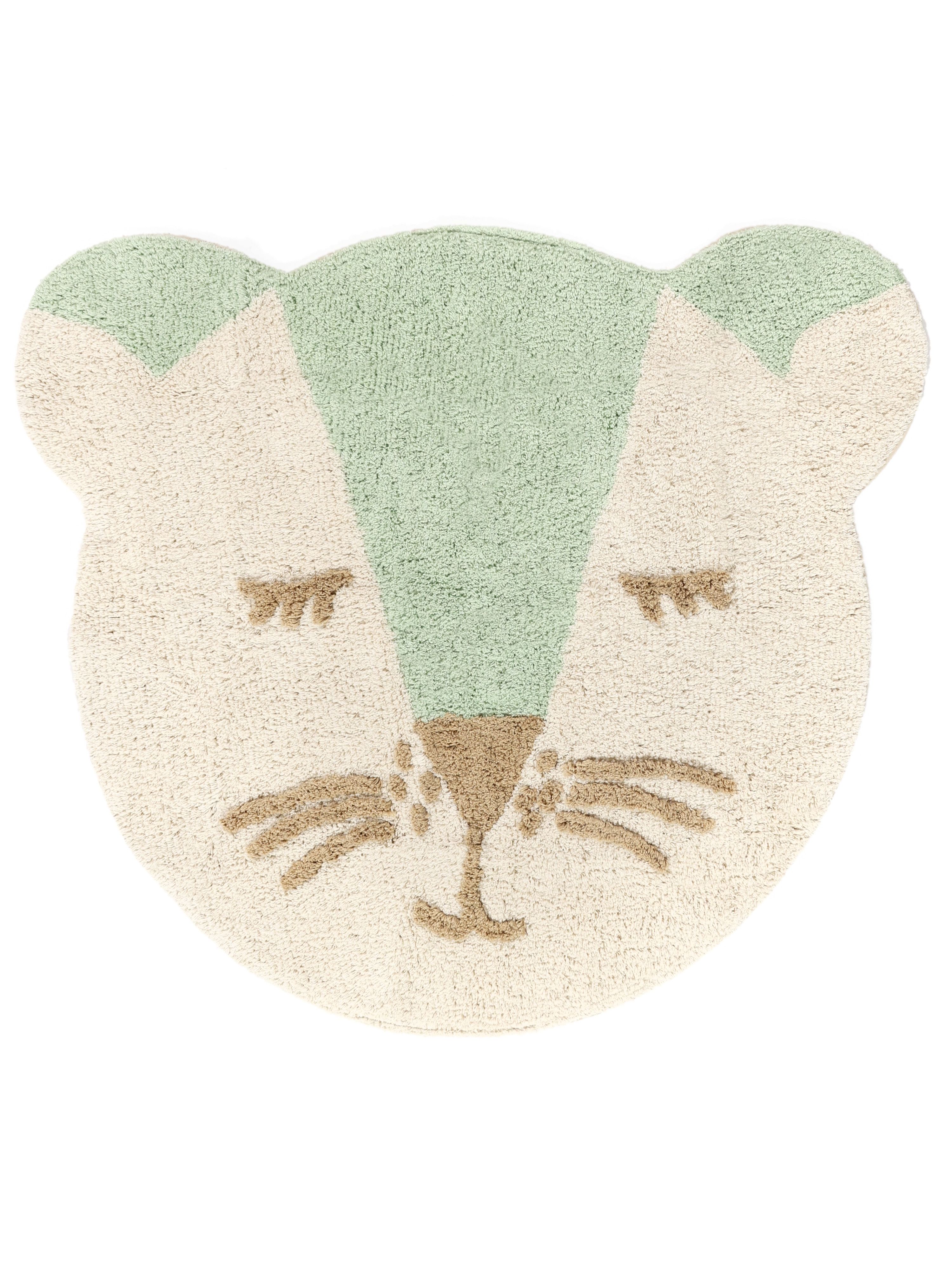 Tapis Pour Enfant RugVista Teddy Friend - Diamètre 100 Cm, Rond, Coton Doux, Couleur Menthe/beige