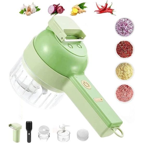 Éplucher, râper, couper en dés… ça te prend un temps fou ? Ce coupe-légumes électrique Meykey va devenir ton meilleur pote en cuisine ! Avec ses 5 cônes en inox interchangeables, il râpe, tranche fin ou épais, hache, et même fait des juliennes. Tu choisis le cône, tu branches, tu appuies sur le bouton, et tu fais glisser tes légumes (carottes, pommes de terre, fromage, etc.) dans la goulotte. En quelques secondes, c’est prêt ! La puissance de 250W (550W max) gère même les légumes durs sans problème. Le gros plus : il est compact (11.5x19x20 cm), donc il prend peu de place sur le plan de travail, et le nettoyage est super simple – la goulotte et les lames se détachent pour passer au lave-vaisselle. Beaucoup moins encombrant et plus rapide qu’un gros robot. Parfait pour préparer des gratins, des salades, des soupes, ou même pour des crudités apéro. Un vrai gain de temps pour cuisiner sain et fait maison sans se prendre la tête.