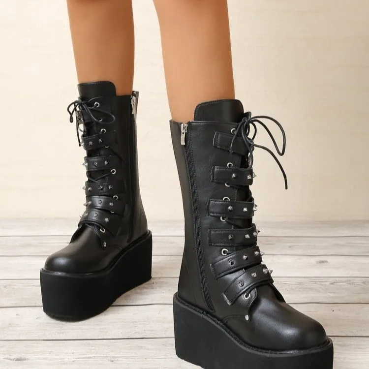 Hey les fashionistas au style rock et décalé ! Ces bottines gothiques à talon épais sont faites pour toi. En noir, avec un mélange de fermeture éclair latérale et de lacets – un look moto/combat ultra tendance. La coupe est un peu large, donc si tu as des pieds larges, c’est parfait (sinon, pense à prendre une taille en dessous de ta taille habituelle). Le talon donne de la hauteur sans être trop haut, pour un style affirmé mais encore portable toute la journée. La semelle est souple, antidérapante, et offre un bon amorti. La doublure est douce et chaude pour l’hiver. Tu peux les enfiler rapidement grâce à la fermeture éclair. Associables avec un jeun noir skinny, une robe noire, un cuir… bref, pour créer des tenues avec caractère, que ce soir pour sortir, pour un concert, ou même au quotidien si tu assumes le look. Un must-have dans la garde-robe des amatrices de style gothique, punk, ou simplement pour ajouter une touche rebelle à ta silhouette. Mesure bien tes pieds avant de choisir la taille, et consulte le guide des tailles fourni. Sois la reine des nuits noires !