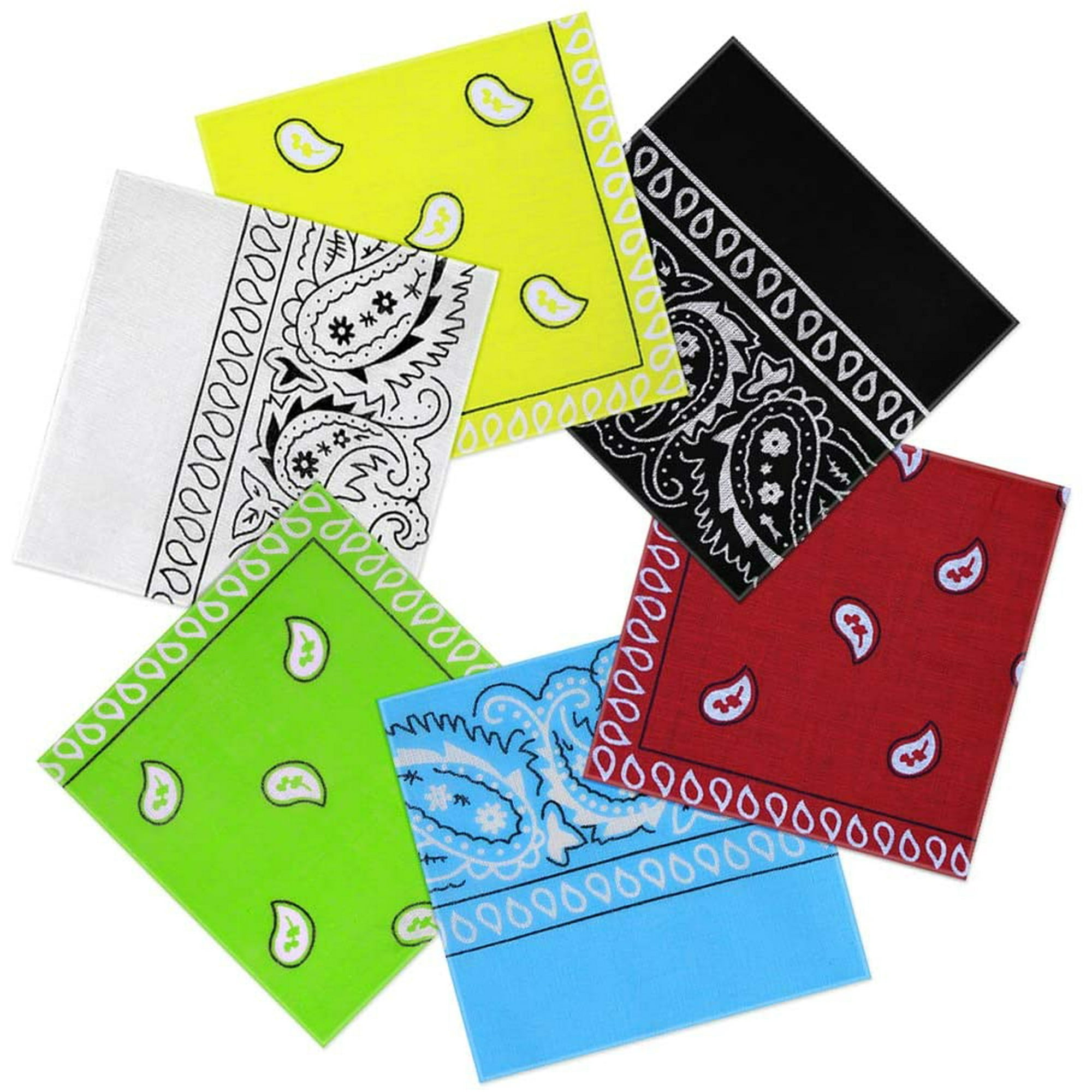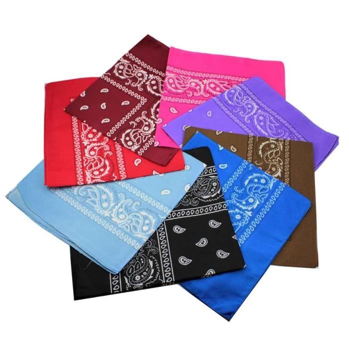Coucou ! Besoin d’un accessoire qui donne du style facilement ? Ce pack de 6 foulards carrés (bandanas) est exactement ce qu’il te faut. Chaque carré fait 54 x 54 cm – une taille universelle qui va aux hommes, femmes, ados, même aux enfants.\n\nIls sont imprimés avec un joli motif cachemire rétro, genre fleurs de cajou, trop classe et polyvalent. Les couleurs tiennent bien, ça ne déteint pas facilement. Le tissu ? C’est du polyester de qualité, doux sur la peau, léger et respirant. Les bords sont bien ourlés et cousus, donc pas de fil qui part.\n\nTu peux les porter en bandana, en foulard autour du cou, attaché au sac… Bref, plein de façons ! Et pour l’entretien, c’est simple : lavage en machine à basse température (pas de rétrécissement ni décoloration).\n\nEn plus, c’est un super cadeau – pratique, pas cher et ça plaît à tout le monde. Si jamais tu as une question, on te répond vite. Bref, 6 bandanas stylés, solides et faciles à vivre. À toi de jouer !