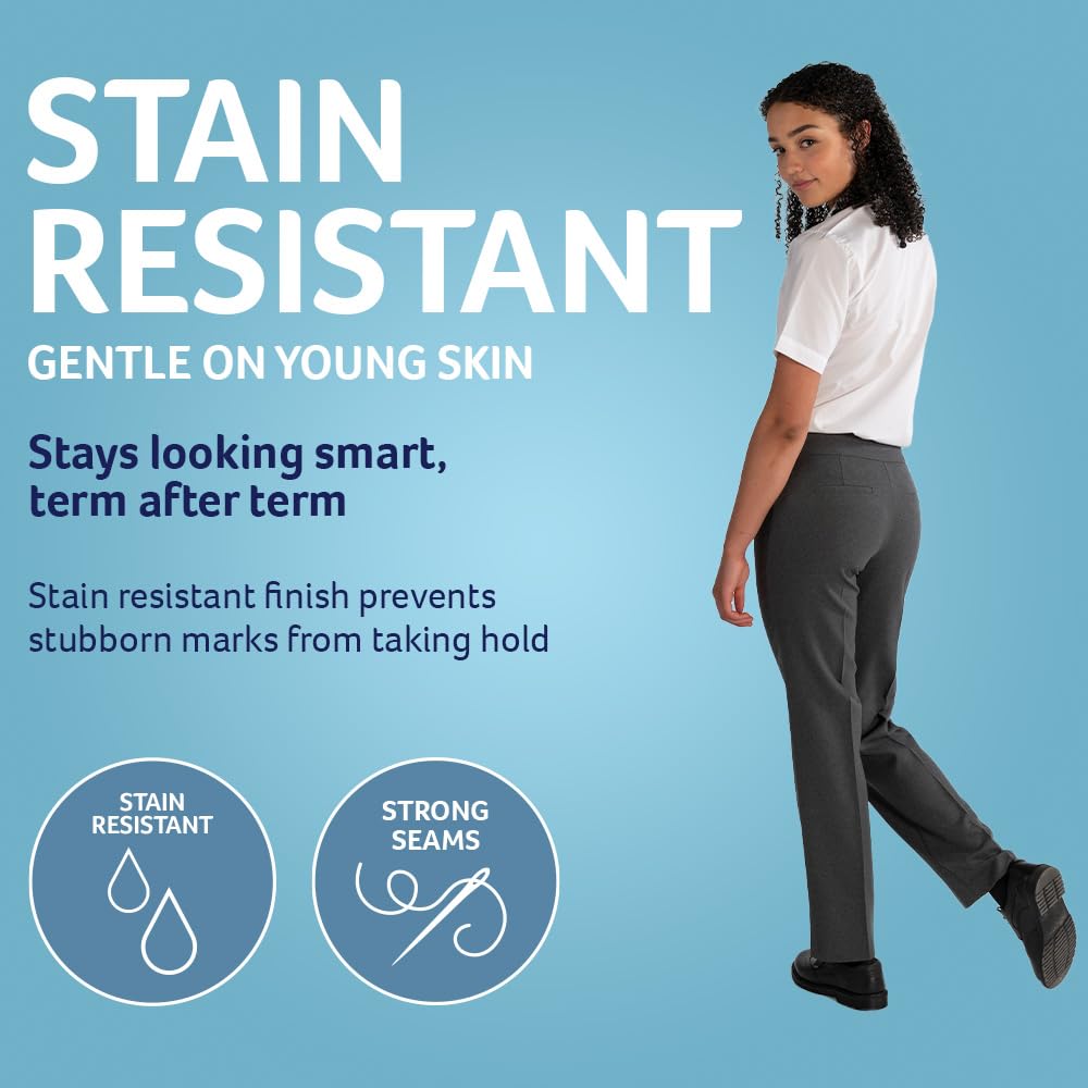 Pantalon Scolaire Fille Trutex Moderne - Coupe Droite, Taille Ajustable Intérieure, Finition Anti-taches - Marine, Taille L/24